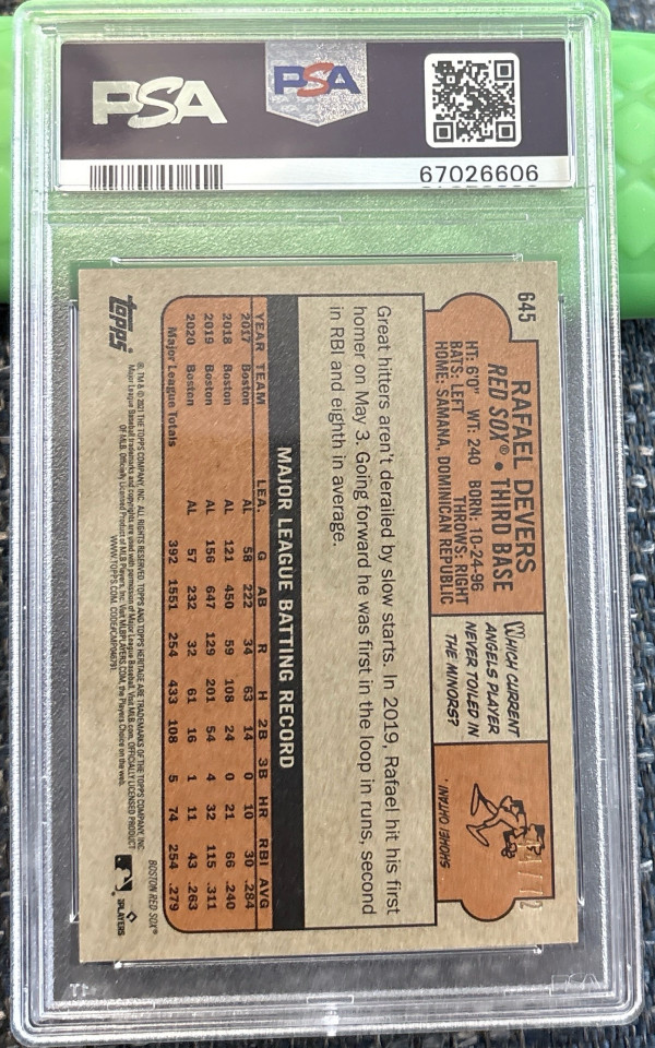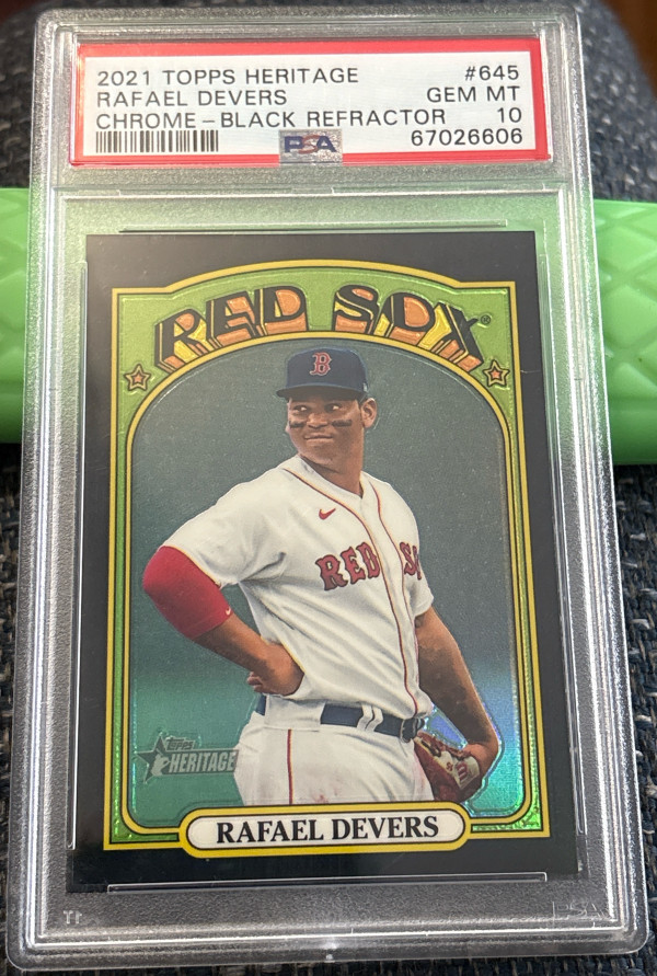 Up for sale is a Rafael Devers 2021 Topps Heritage chrome black refractor serial numbered to just /72 This is 44 /72. Professionally Graded by PSA, 10 Gem Mint. Population of 1. Very Rare don’t miss out.