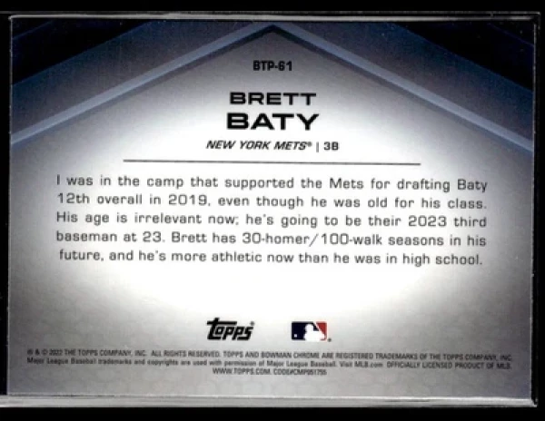 2022 Bowman - Chrome Bowman Scouts Top 100 Brett Baty #BTP-61 (RC)