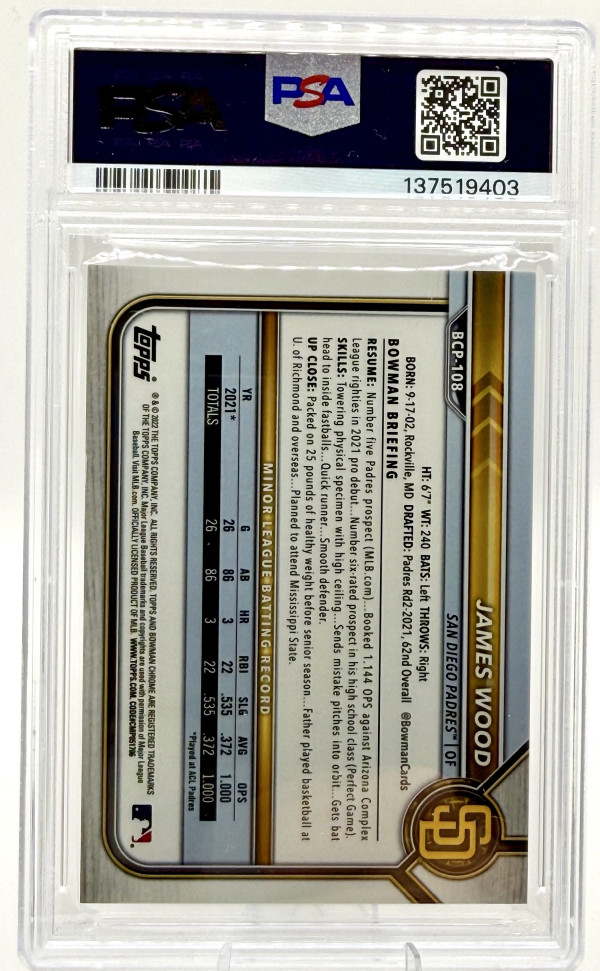 2022 Bowman Chrome Prospects James Wood Chrome Pros-Speckle Ref.