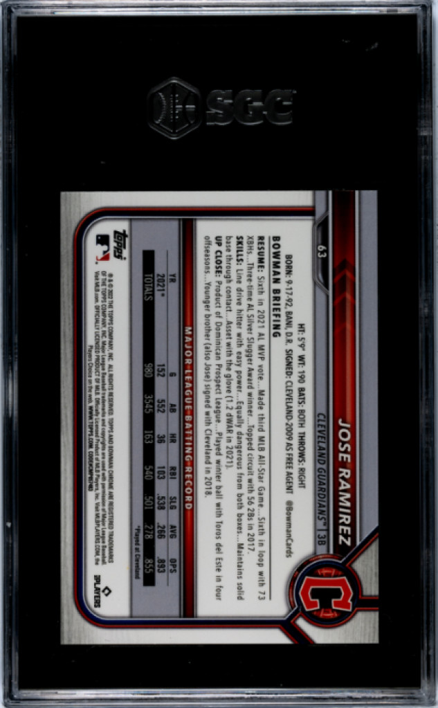 2022 Bowman Chrome Sapphire Jose Ramirez SGC 9
