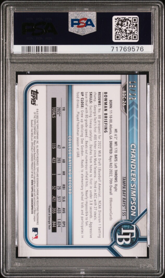 2022 Bowman Draft Chandler Simpson Chr-Orange Refractor /25 PSA 10