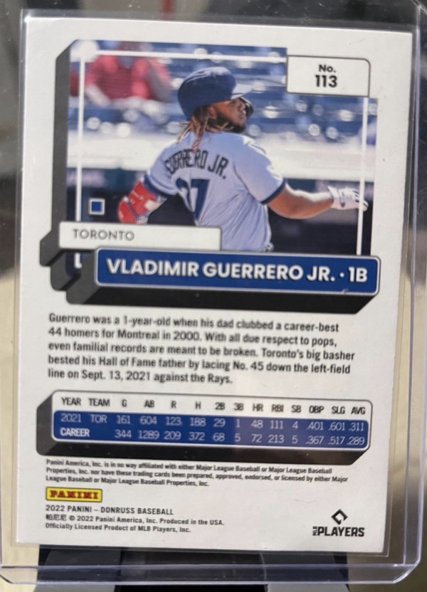 2022 Donruss Variation Orange Holo 113 Vladimir Guerrero Jr Blue Jays