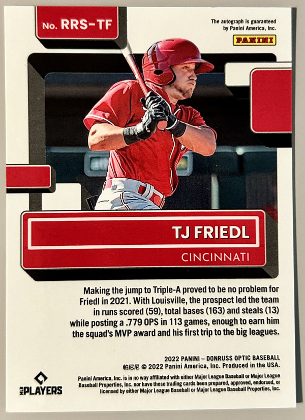 2022 Panini Donruss Optic Rated Signatures TJ Friedl #RRS-TF Rookie Auto RC Reds