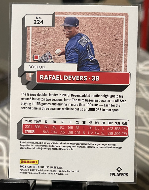 2022 Panini Donruss Rafael Devers #224 Holo Orange Parallel Red Sox