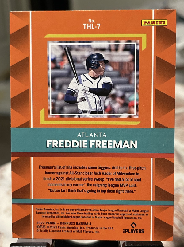 2022 Panini Donruss - The Hit List Freddie Freeman #THL-7 Refractor