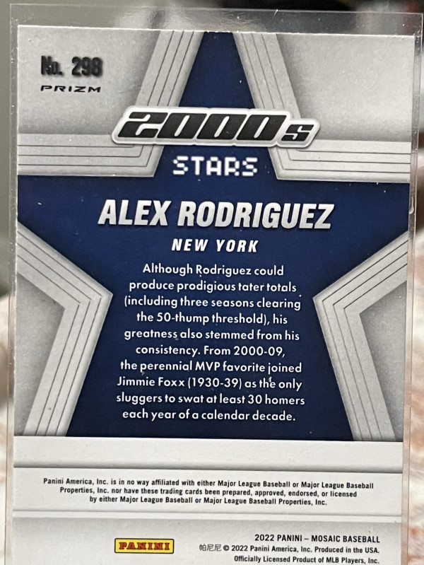 2022 Panini Mosaic 2000's Stars Alex Rodriguez #298 Silver Prizm