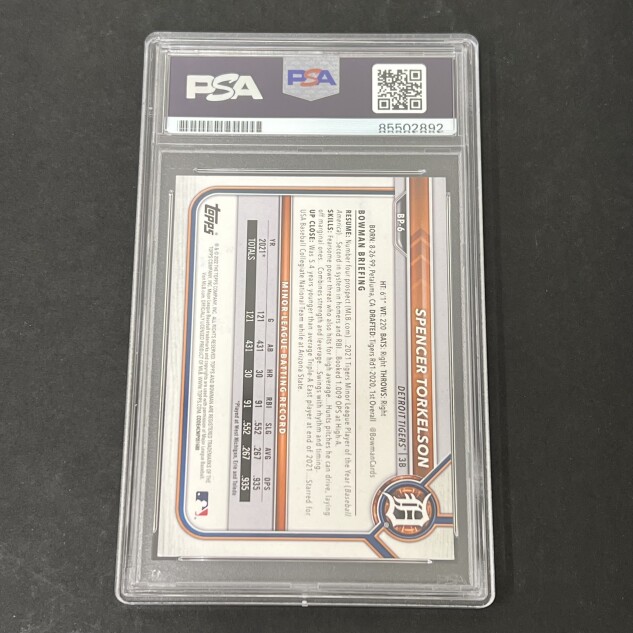 This listing features a Topps Bowman Prospects #BP-6 Spencer Torkelson, professionally PSA authenticated.