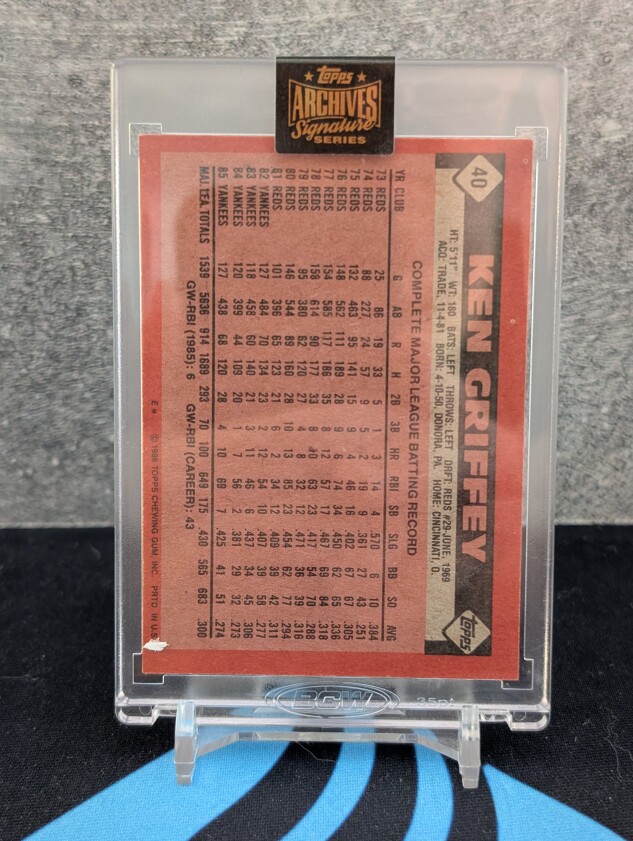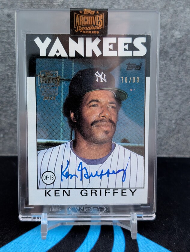 This is a 2022 Topps Archives Signature Series Retired Ken Griffey Sr. AUTO /99 still in the factory one-touch. The exact card is pictured.