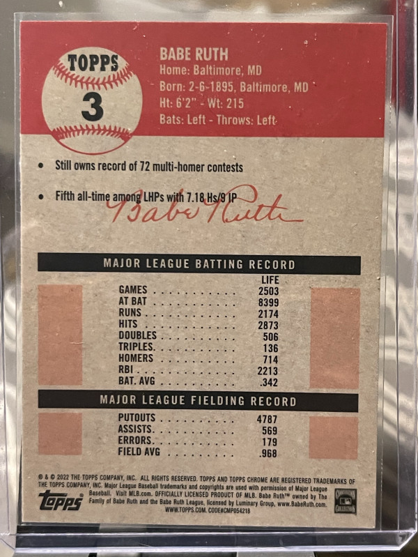 2022 Topps Chrome Platinum Anniversary Babe Ruth #3-Boston Red Sox