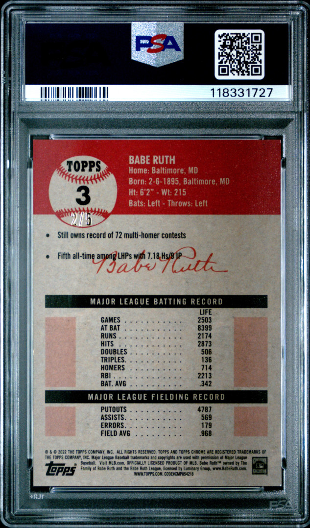 2022 Topps Chrome Platinum Anniversary Babe Ruth Plt Toile Cream/Red Ref