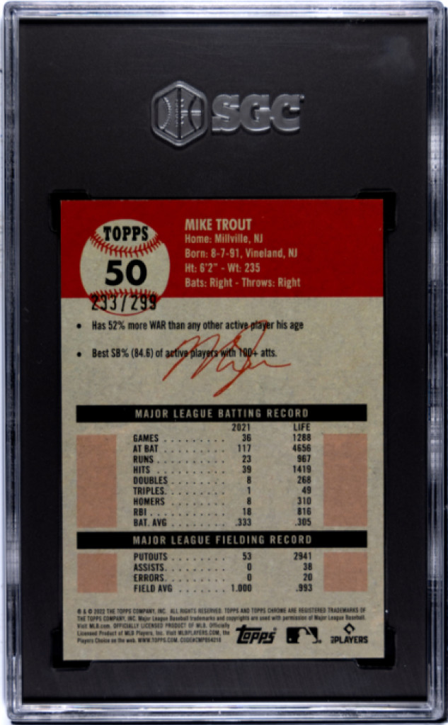 2022 Topps Chrome Platinum Anniversary Mike Trout SGC 10