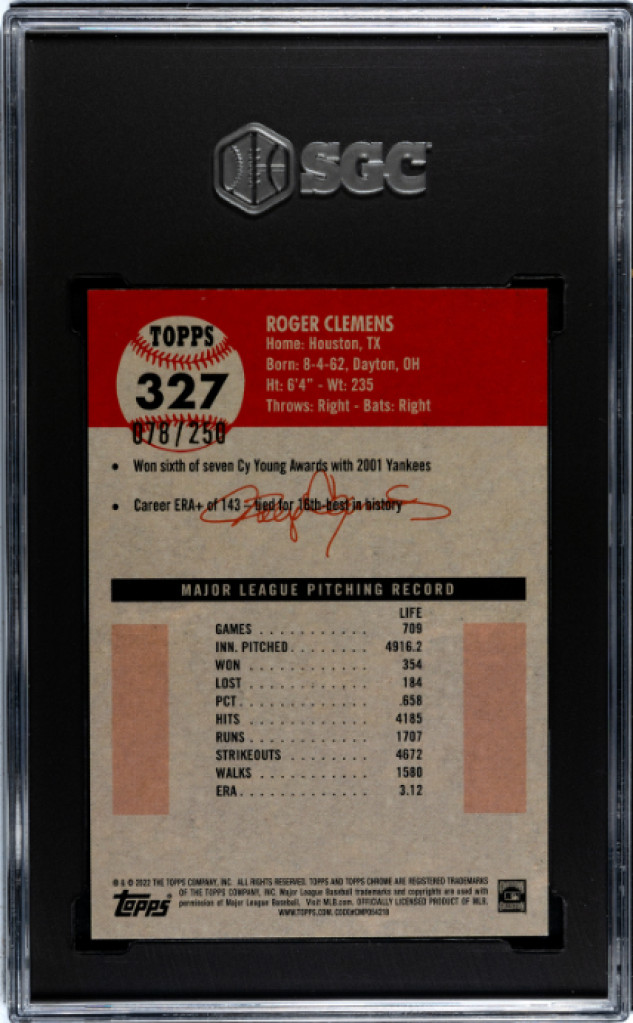 2022 Topps Chrome Platinum Anniversary Roger Clemens SGC 10