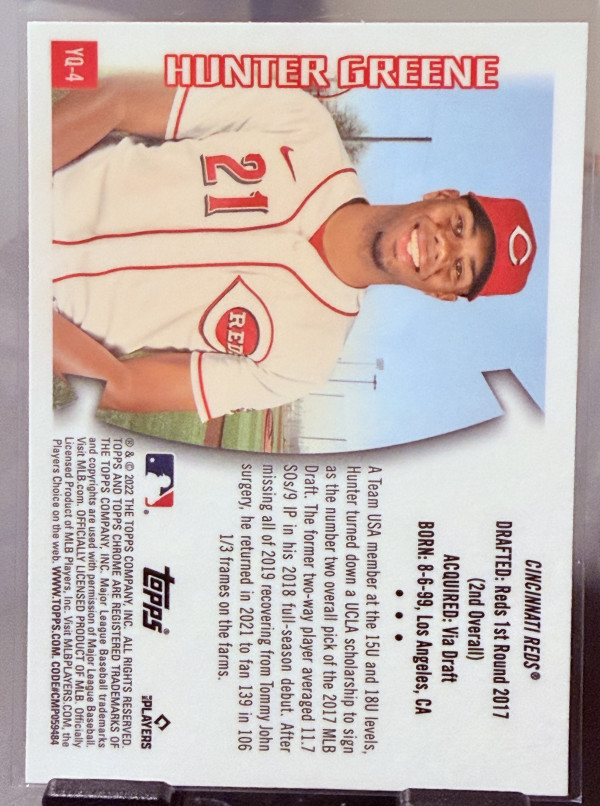 2022 Topps ChromeBaseball #YQ-4 Hunter Greene (RC) Youthquake Silver Refractor