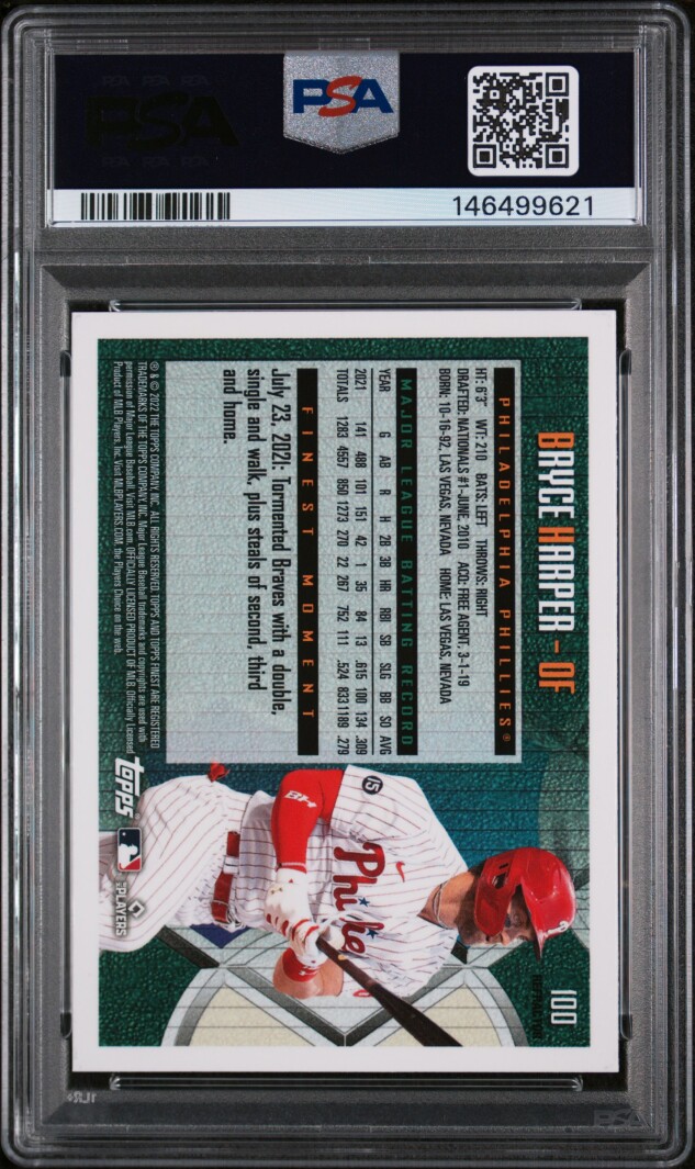 2022 Topps Finest Flashbacks BRYCE HARPER Rare SHORTPRINT REFRACTOR #100 - GRADED PSA 10 GEM MINT - Philadelphia Phillies