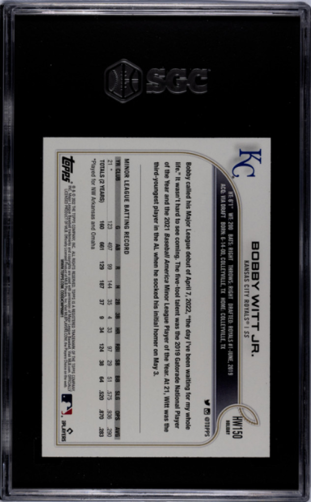 2022 Topps Holiday Bobby Witt Jr. SGC 9.5