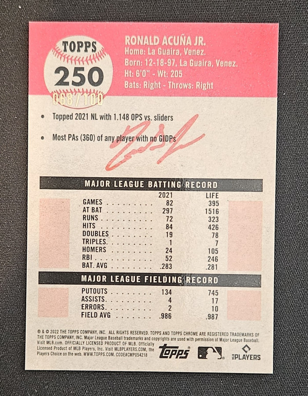 2022 Topps Hrome Platinum Anniversary Ronald Acuna Jr Red Atomic/100