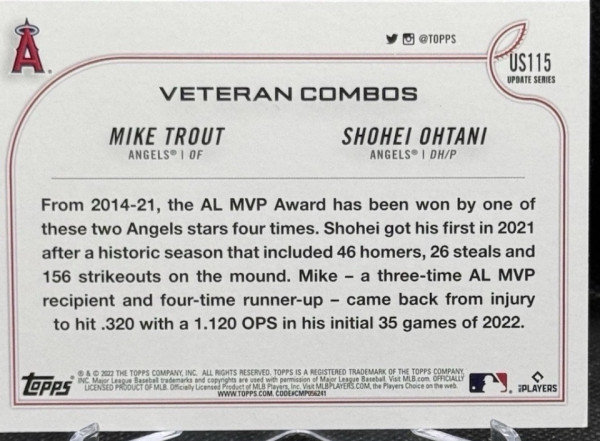 2022 Topps Update Royal Blue Veteran Combos Mike Trout Shohei Ohtani #US115