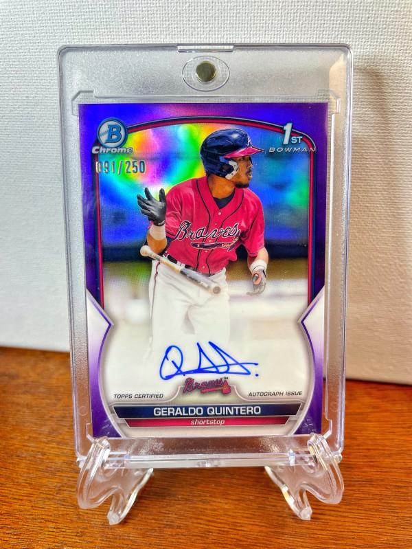 This is (1) 2023 Bowman Chrome 1st GERALDO QUINTERO Auto Purple Refractor #/250 #CPA-GQ. Thank you for checking out my listing!