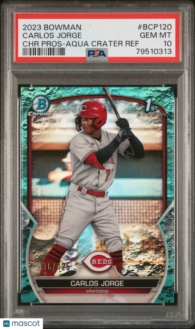 You are purchasing a 2023 Bowman Chrome Prospects Carlos Jorge #BCP120 PSA 10. You will receive the exact item in the photographs. Thank you for looking.