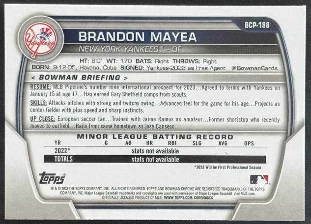 2023 Bowman Chrome Brandon Mayea Mojo #BCP-188