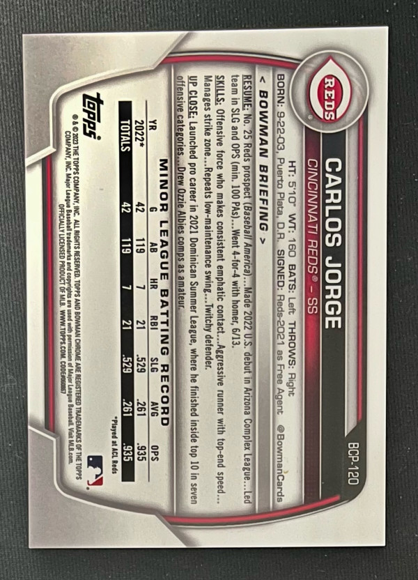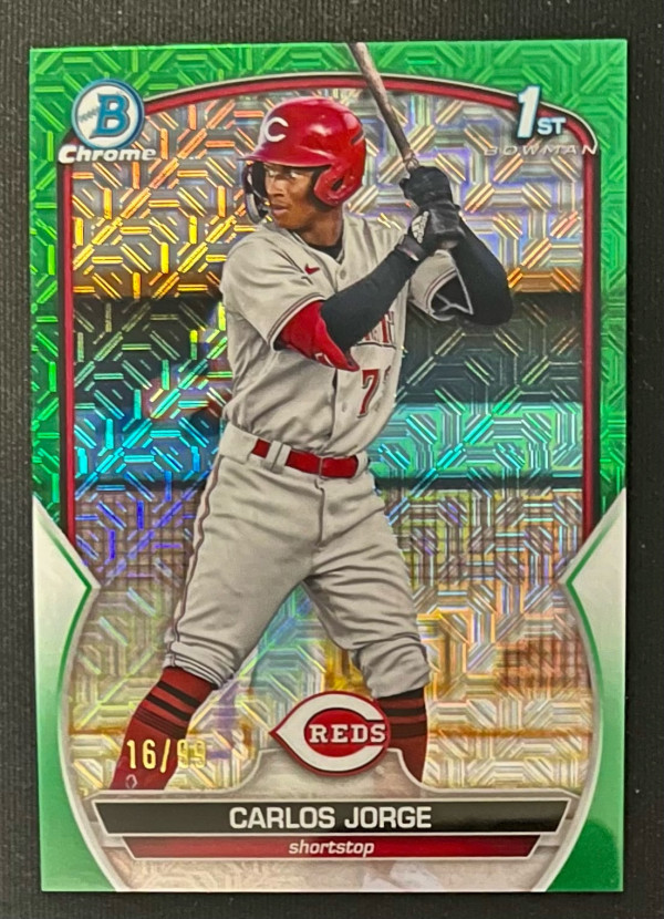 2023 Bowman Chrome Carlos Jorge 1st Bowman Green Mojo Refractor /99