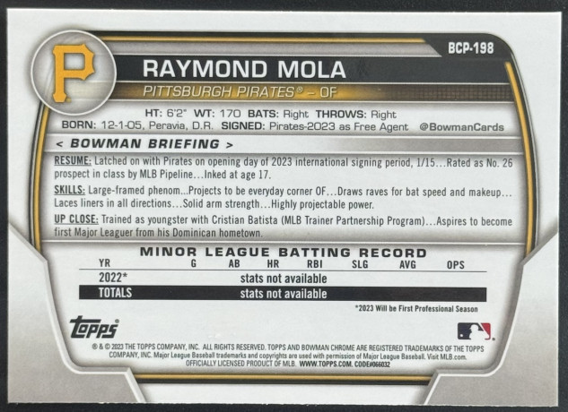 2023 Bowman Chrome Raymond Mola Mojo #BCP-198