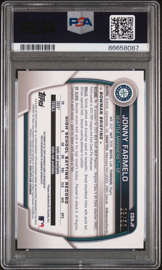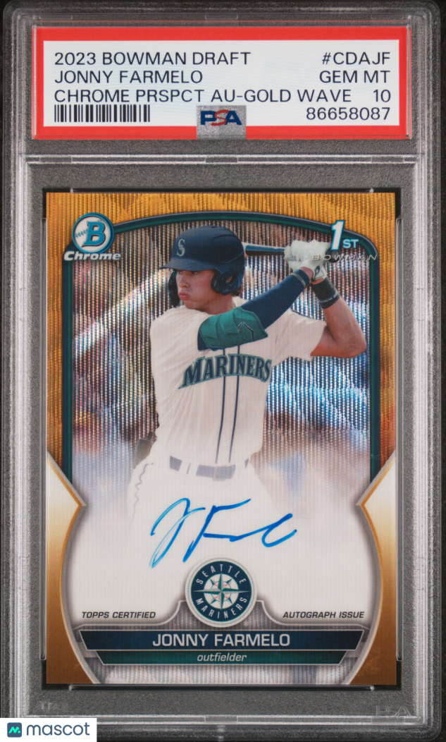 You are purchasing a Jonny Farmelo #CDAJF Prspct Gold Wave PSA 10. You will receive the exact item in the photographs. Thank you for looking.