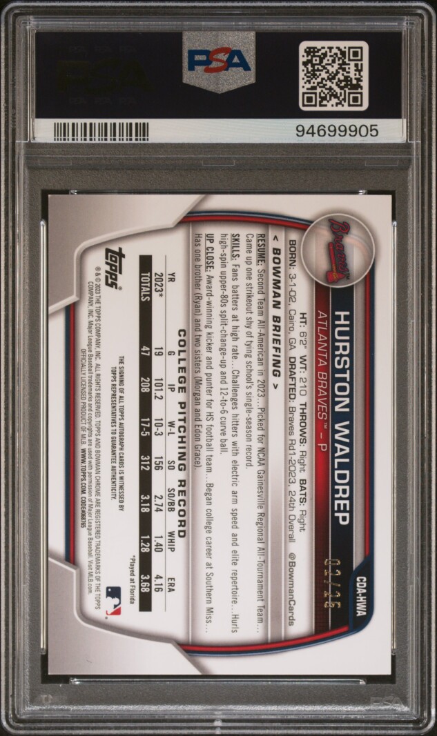 2023 Bowman Draft Chrome Prospect Autograph Hurston Waldrep Refractor PSA 9