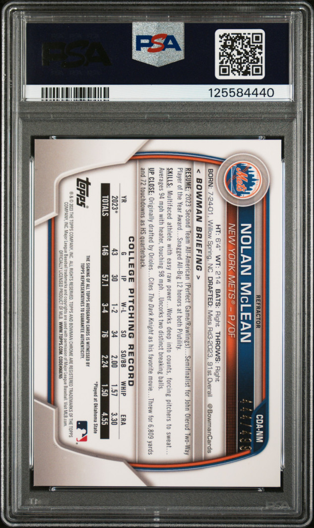 2023 Bowman Draft Chrome Prospect Autograph Nolan Mclean Chrome Prspct Au-Ref