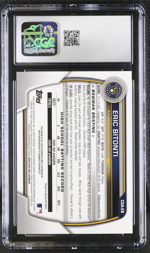 2023 Bowman Draft Chrome Prospect Autographs #CDA-EB Eric Bitonti CGC 10
