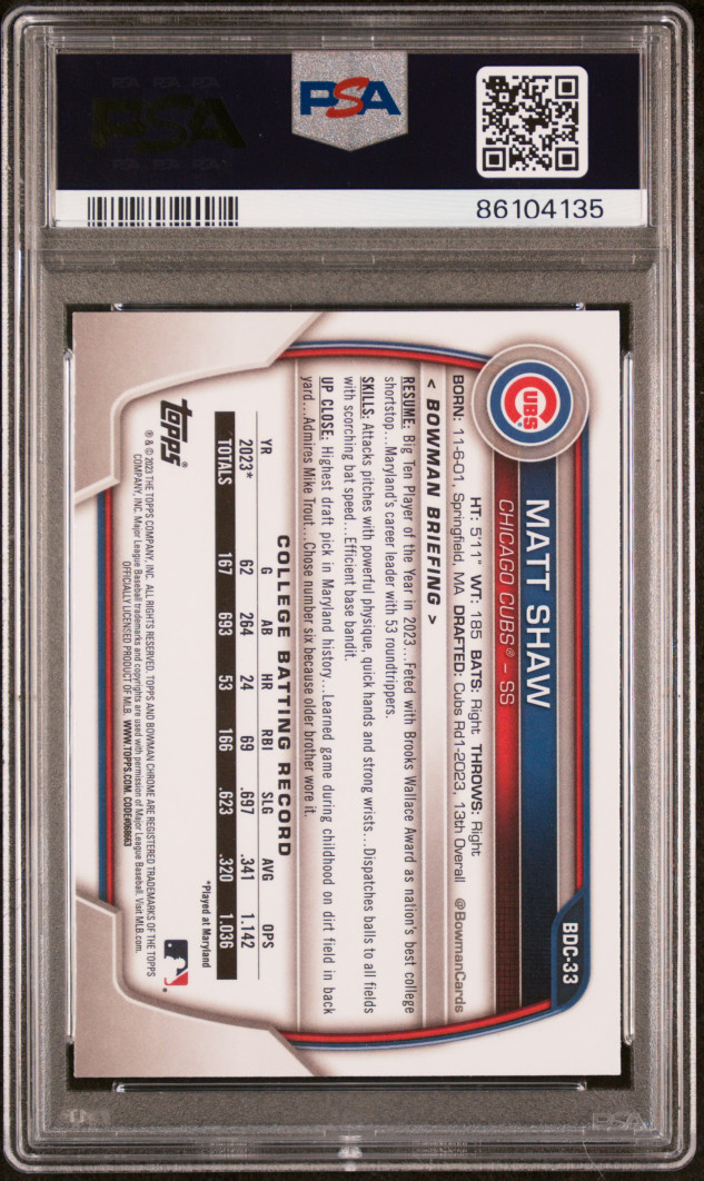 Matt Shaw Bowman Draft Chrome. Graded PSA 8,