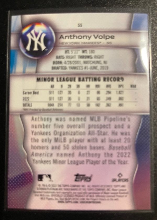 2023 Bowman Platinum Anthony Volpe #55 Ice Pattern Foil (RC)