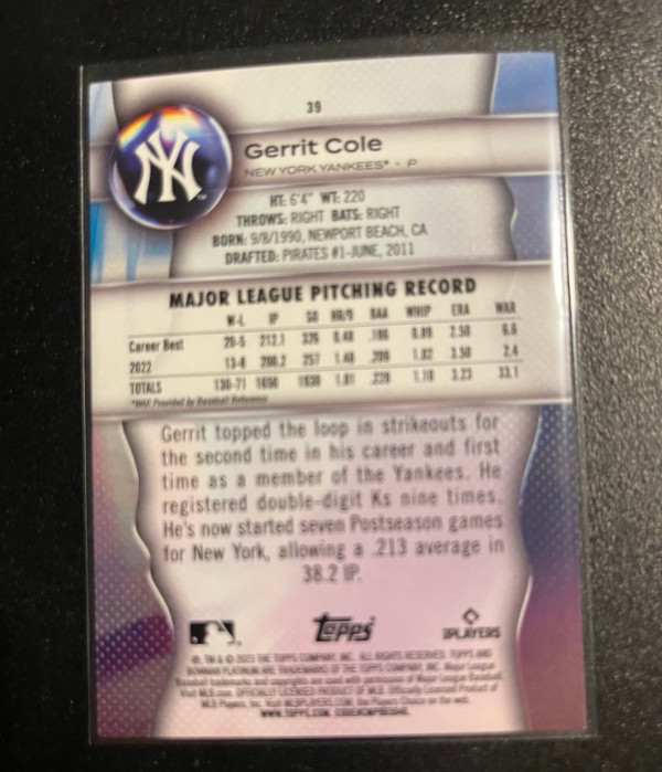 2023 Bowman Platinum Gerrit Cole #39 Ice Pattern Foil