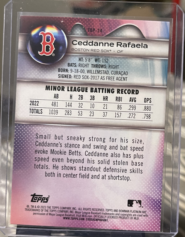 2023 Bowman Platinum Ice Foil - TopProspects #TOP-24Ceddanne Rafaela (RC)