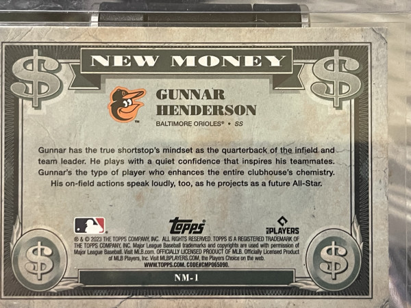 2023 Bowman Platinum New Money Gunnar Henderson #NM-1 (RC)