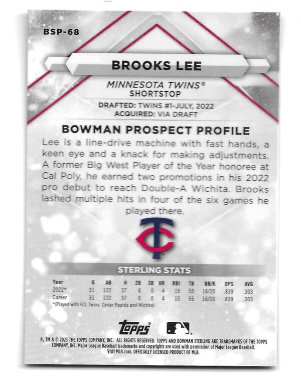 2023 Bowman Sterling Prospects #BSP68 Brooks Lee (RC) - Minnesota Twins
