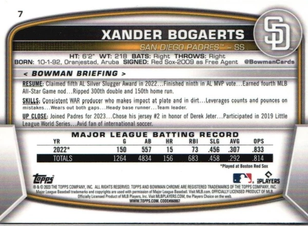 2023 Bowman - Xander Bogaerts #7 Chrome Mojo Refractor