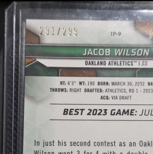 2023 Bowman's Best Mini Diamond Refractor Jacob Wilson #TP-9 Athletics #/299