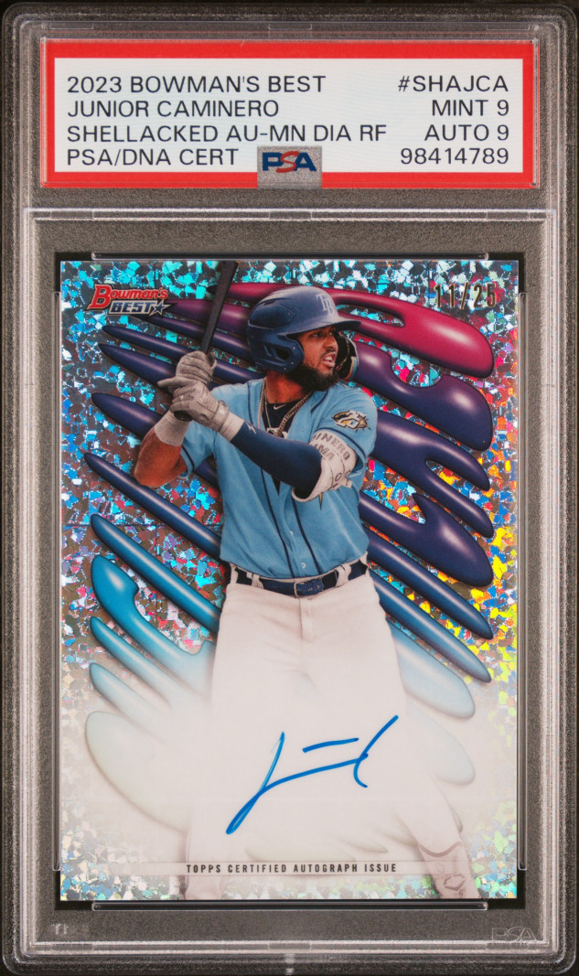 2023 Bowman's Best Shellacked Autographs Junior Caminero Shellacked Au-Mn Dia Rf