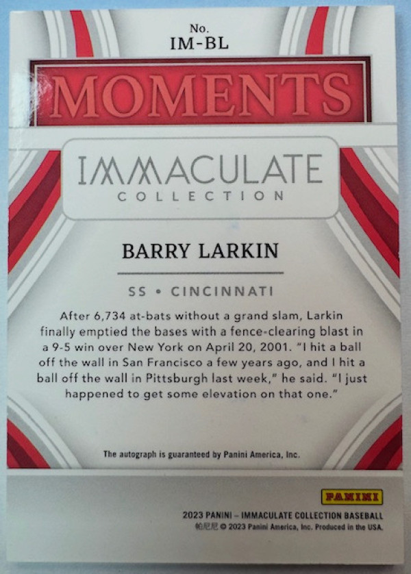 You are purchasing a 2023 Panini Immaculate Barry Larkin #HOF-BL Red. You will receive the exact item in the photographs. Thank you for looking.