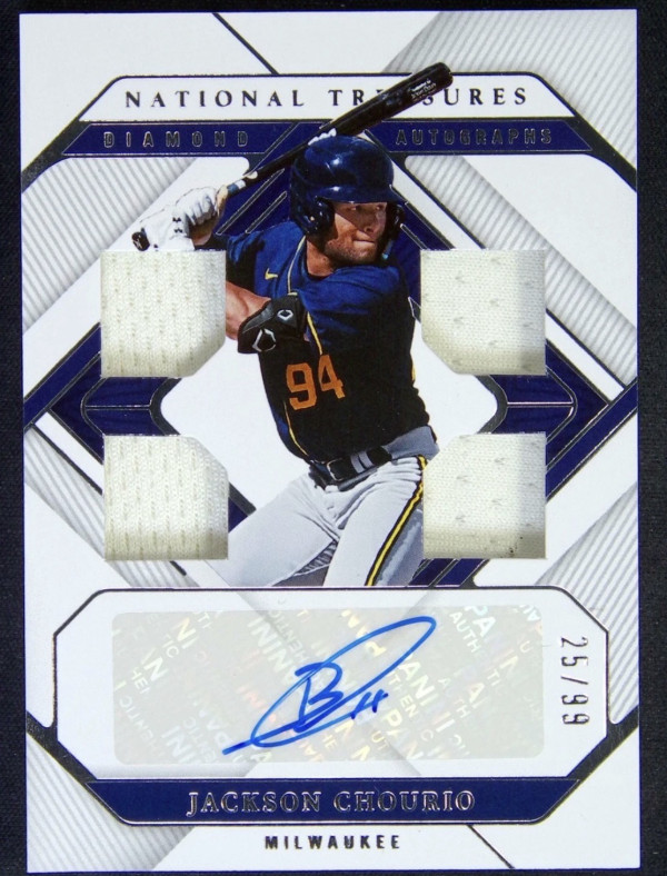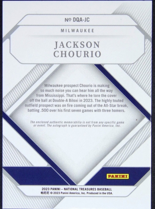 2023 Panini National Treasures Jackson Chourio Diamond Quad Patch Auto /99 #DQA-JC