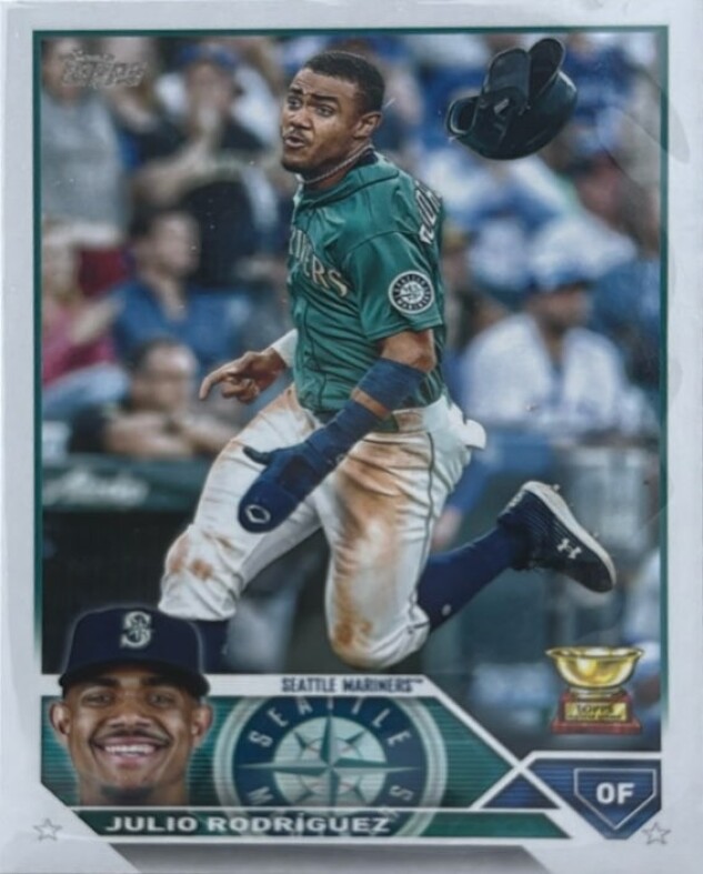 2023 Topps #330 Julio Rodríguez Listed With Mascot.