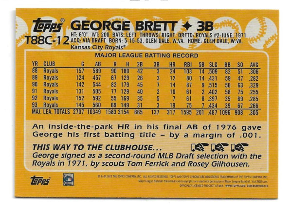 2023 TOPPS '88 TOPPS SILVER PACK CHROME #T88C-12 GEORGE BRETT