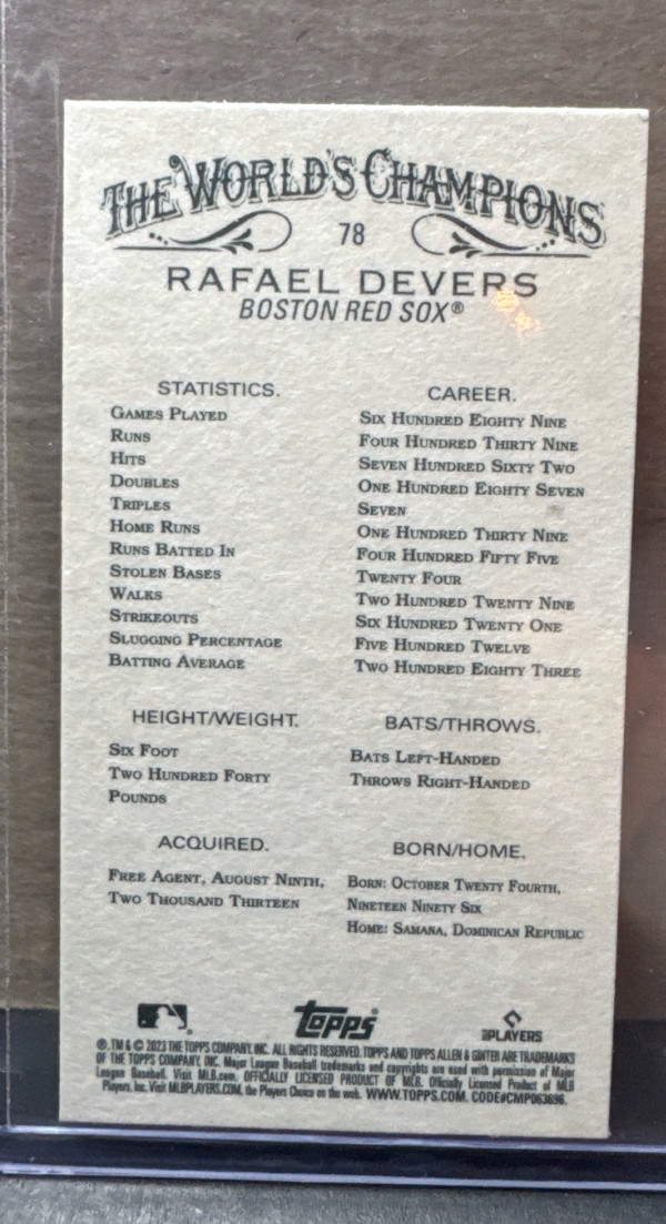 2023 Topps Allen & Ginter #78 Rafael Devers Mini Black Border