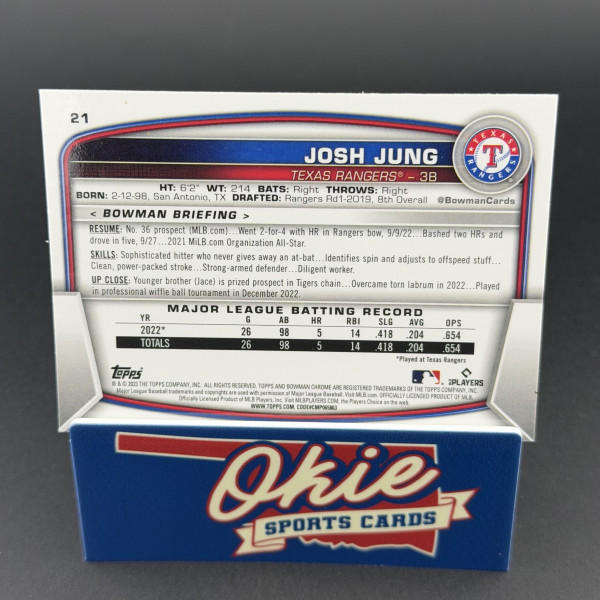 You are purchasing a 2023 Topps Archives Signature Series Bowman Chrome Josh Jung #21 RC 19/50. You will receive the exact item in the photographs. Thank you for looking.