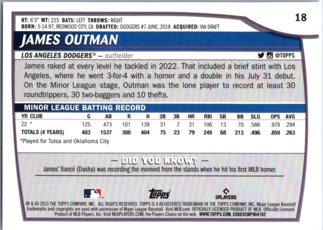 This is a nice example of a 2023 Topps Big League #18 James Outman