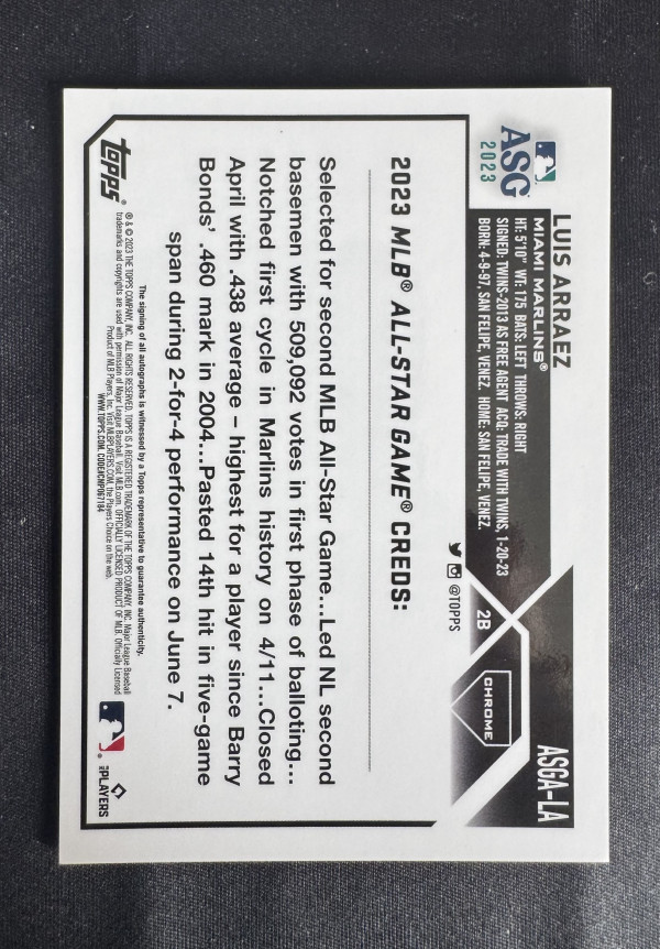 2023 TOPPS CHROME UPDATE 2023 ALL-STAR GAME AUTOGRAPH LA LUIS ARRAEZ