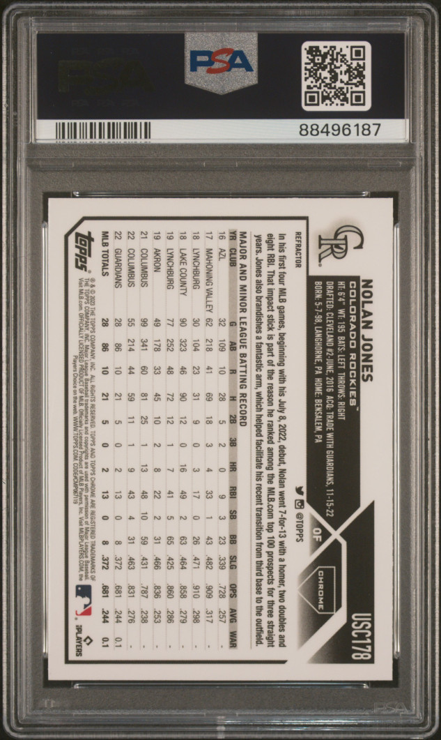 Nolan Jones 2023 Topps Chrome Refractor Graded PSA 10;