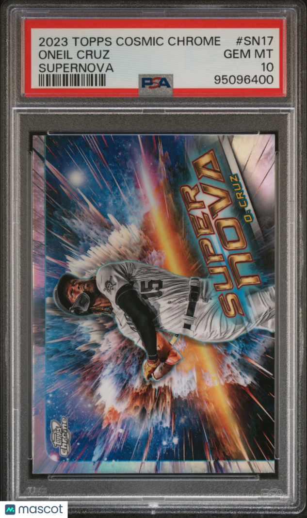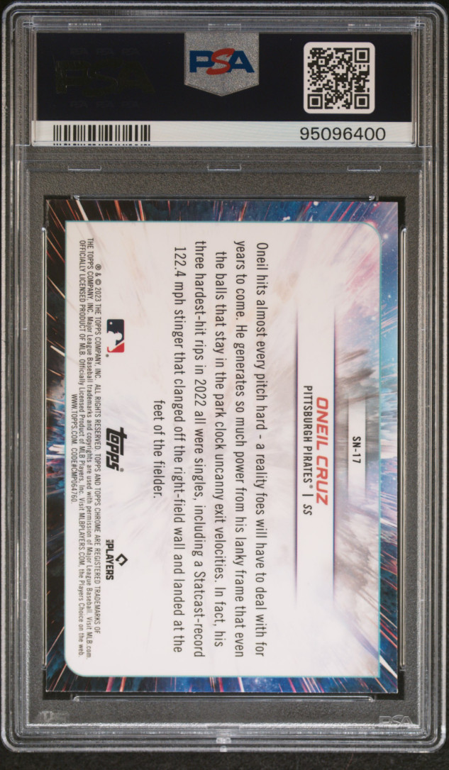 You are purchasing a 2023 Topps Cosmic Chrome Supernova Oneil Cruz #SN17 PSA 10. You will receive the exact item in the photographs. Thank you for looking.