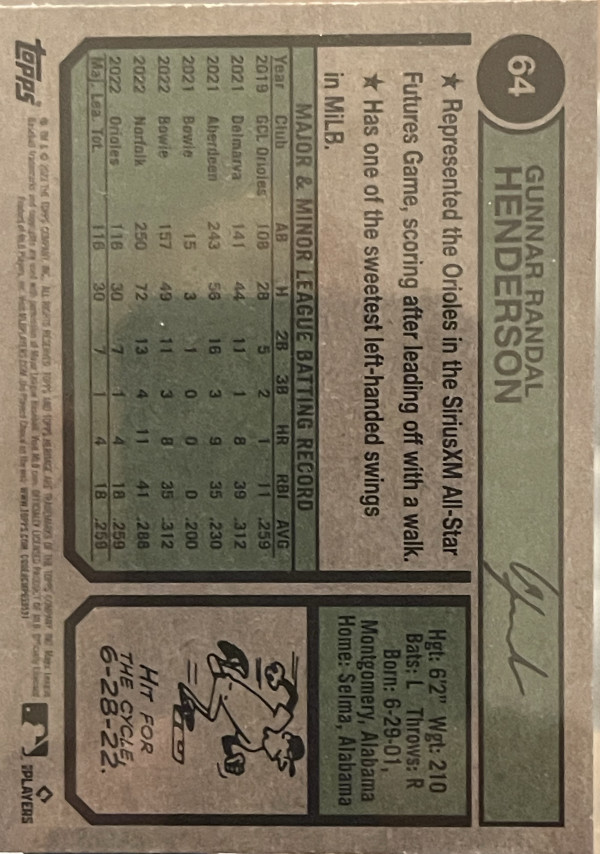 2023 Topps Heritage Baseball Gunnar Henderson #64 Rookie RC Baltimore Orioles